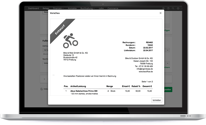 - Hat sich der Kunde entschieden, genügen wenige Klicks, um eine bereinigte Auftragsbestätigung oder Rechnung zu erzeugen.