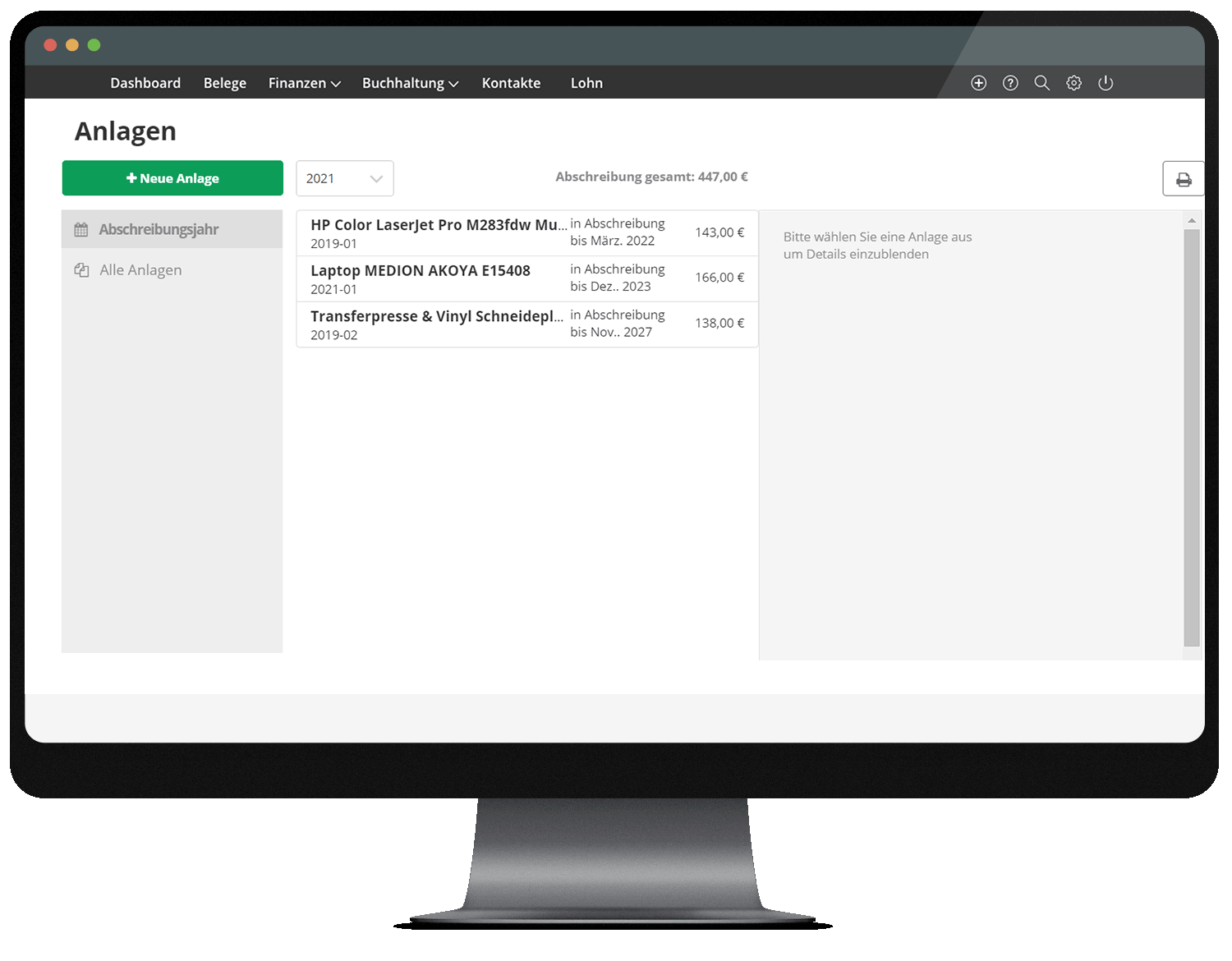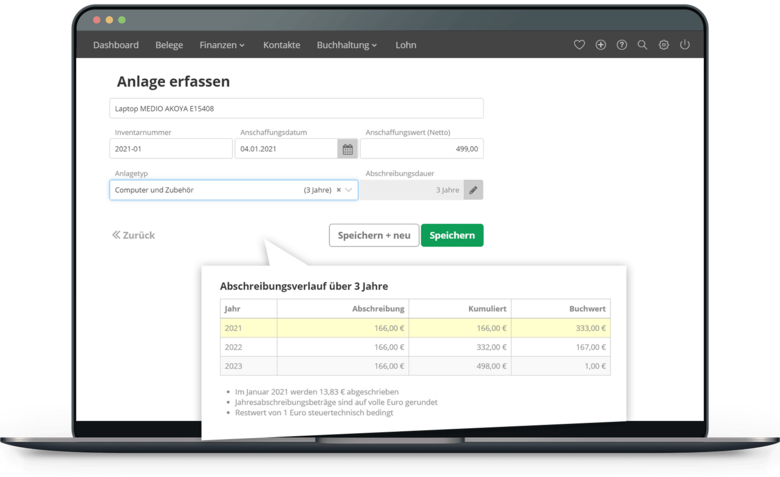 Abschreibung von Anlagegütern mit wenigen Klicks