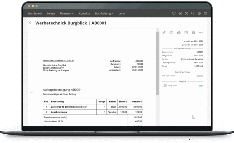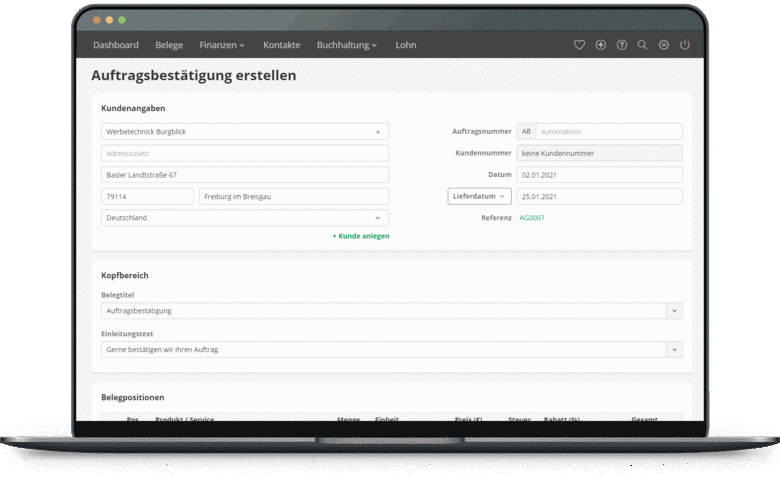 Auftragsbestätigungen direkt online erstellen und verwalten