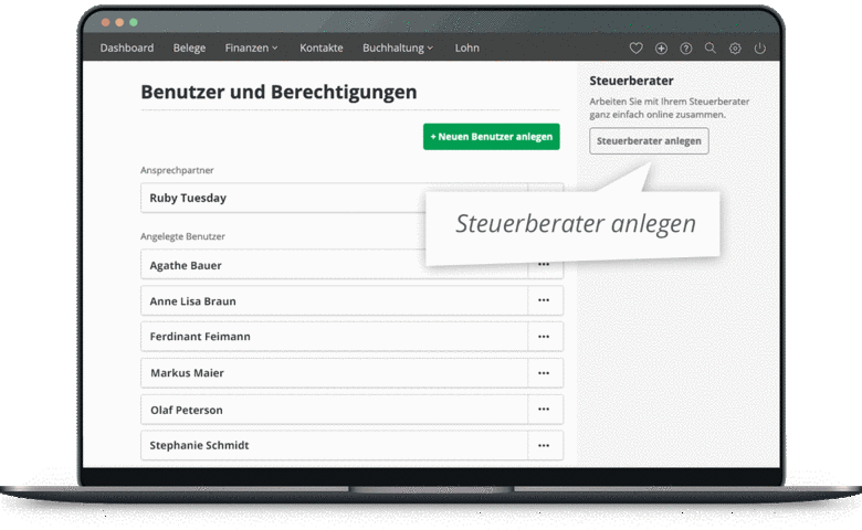 - Mit dem Steuerberater-Zugang einfach Zugriff auf Daten gewähren