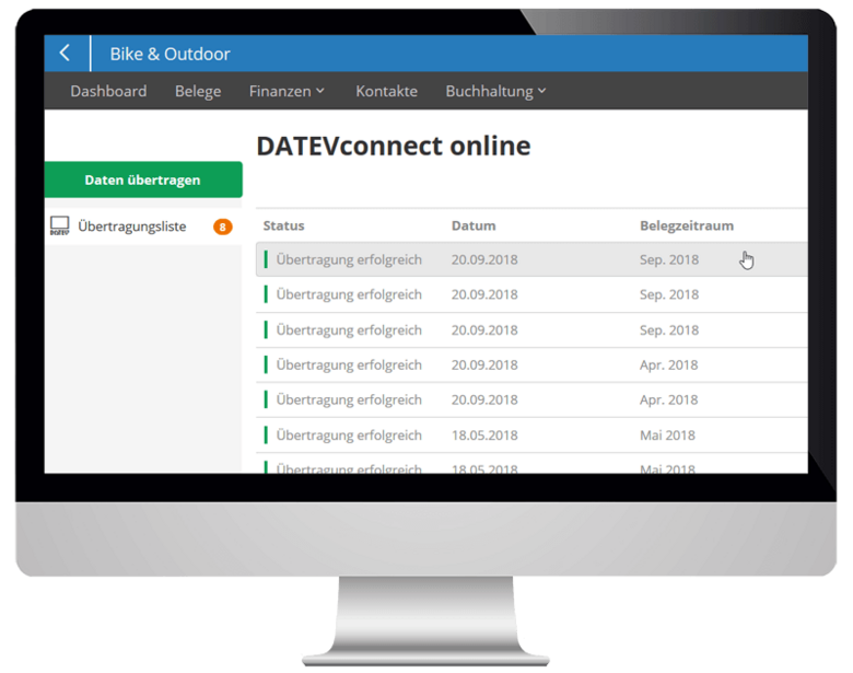 Als DATEV-Buchungsmandant erledigt deine Steuerkanzlei die komplette unterjährige Buchhaltung für dich. In diesem Fall nutzt du den DATEV-Rechnungsdatenservice 1.0 und überträgst die Ein- und Ausgangsbelege inkl. der Belegdaten.
