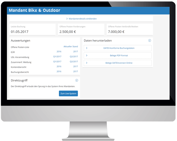 - Direkte Weiterverarbeitung durch die Steuerkanzlei möglich
