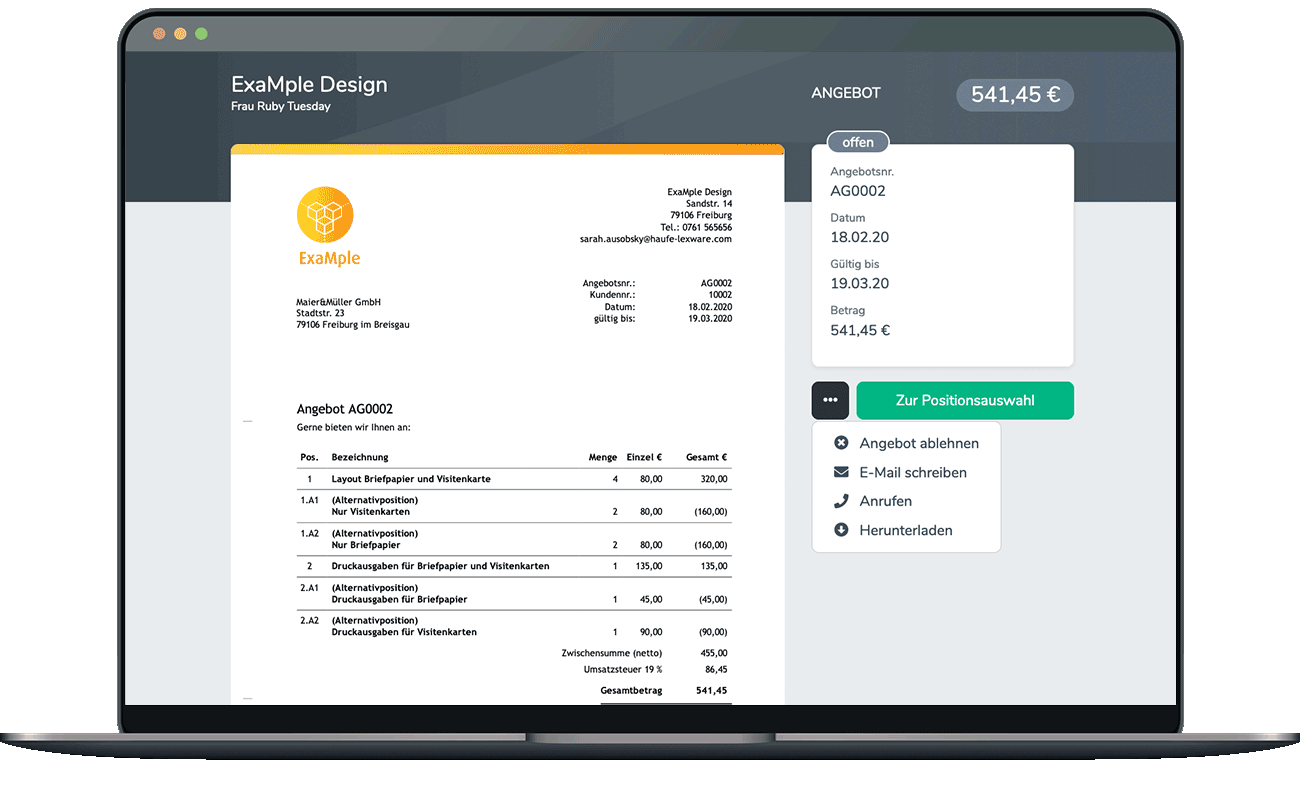 Verwalte mithilfe des Kundencenters deine Angebote für deine Kunden einfach und unkompliziert mit Lexware Office.