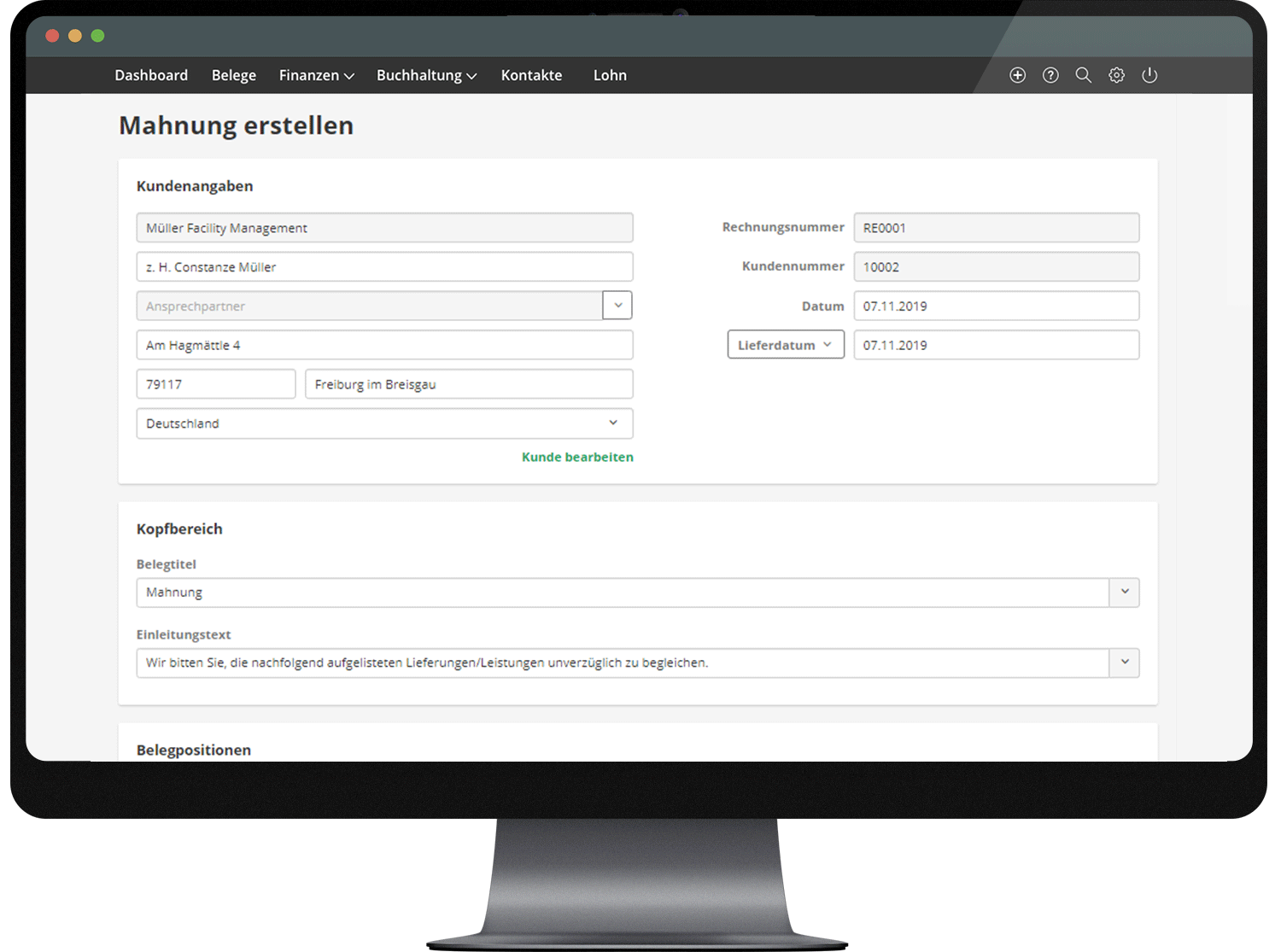 Geraten deine Kunden mit Zahlungen in Verzug, erstellst du in Lexware Office mit wenigen Klicks aus einer offenen Rechnung die passende Mahnung. Da ein Mahnbescheid ähnlich einer Rechnung nicht unterschrieben sein muss, sendest du anschließend die Forderung direkt in digitaler Form ab.