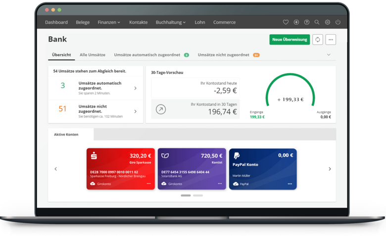 Ja, mit dem Lexware Office Banking kannst du verschiedene Kontentypen anbinden, neben PayPal zum Beispiel auch Giro-, Kreditkarten oder Tagesgeldkonten.