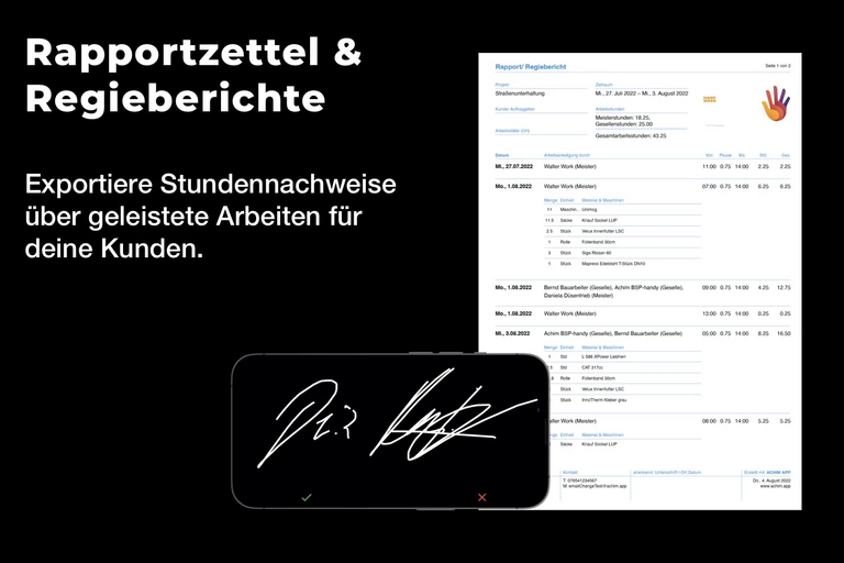 Rechnungen schreiben mit Unterstützung der von ACHIM generierten Rapportzettel ist genial!