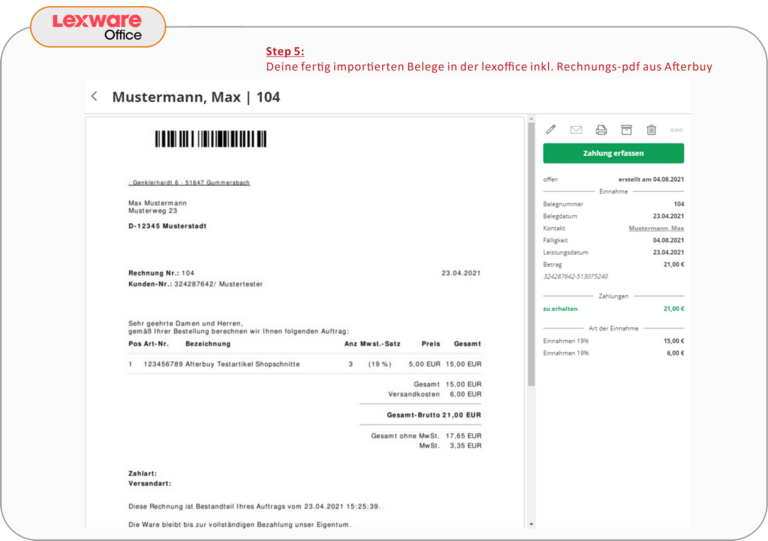 Alle Belege werden dann automatisch (inkl. der Afterbuy PDF-Dateien) zu Lexware Office importiert.