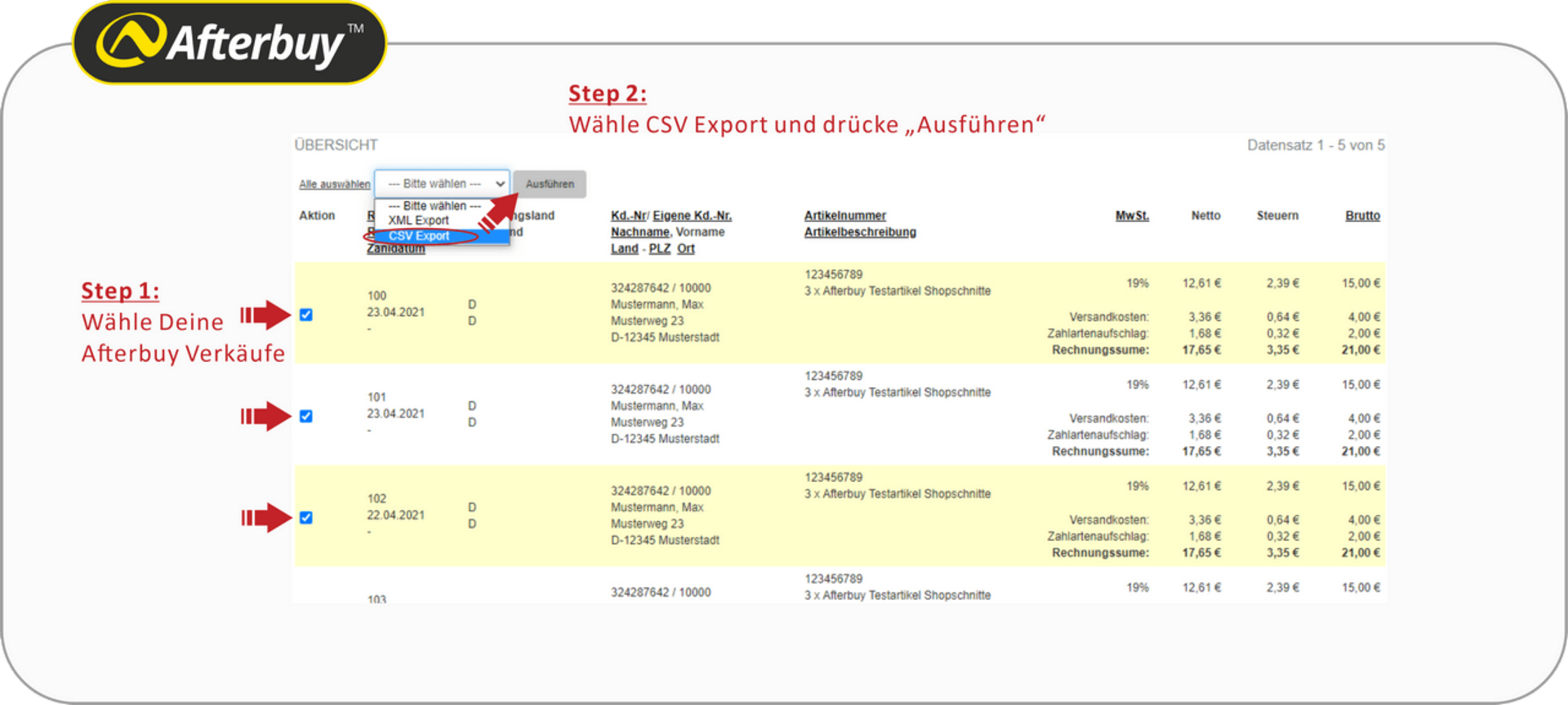 Übertrage Rechnungsdaten (inkl. PDF Beleg) und Kundendaten von Afterbuy nach Lexware Office.