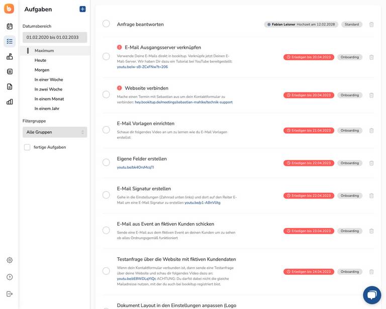 - Aufgabenmanagement: Erstelle Aufgaben und verknüpfe sie mit Events, um stets alle ToDos auf dem Schirm zu haben.
