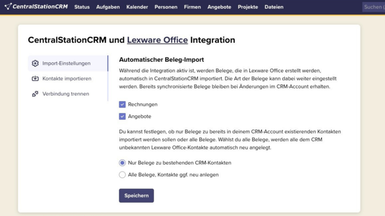 Es benötigt nur ein paar Klicks, um CentralStationCRM mit Lexware Office zu verbinden. Gehe wie folgt vor: