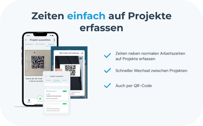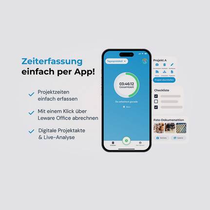 - Arbeitszeiten projektbasiert erfassen (mobil & stationär)