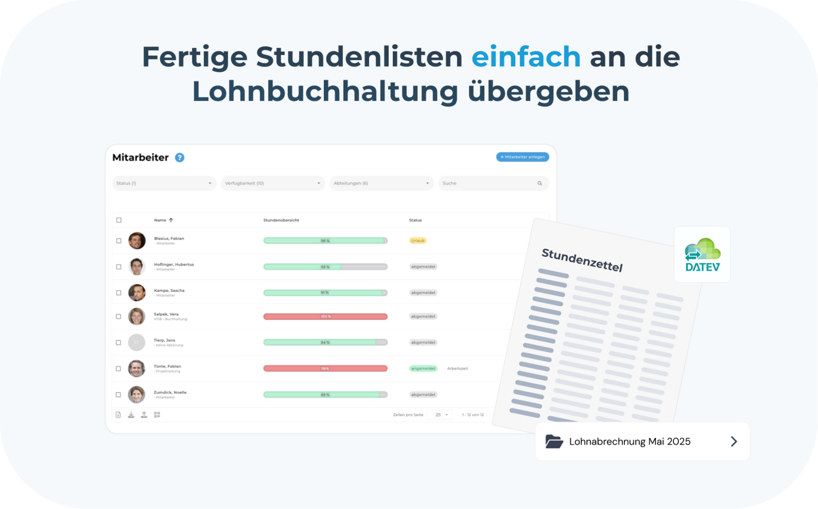 - Automatische Erstellung der Stundenzettel (inkl. Korrektur-Funktion)