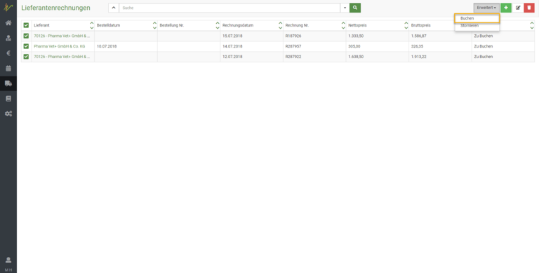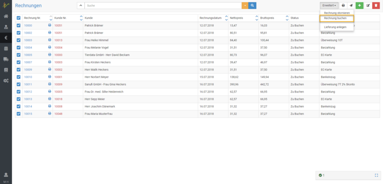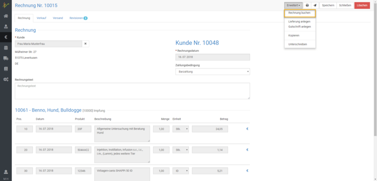 - Rechnung: Wird in debevet eine Behandlung abgerechnet, so kann die Rechnung mit nur einem Klick sofort verbucht werden. Dieses Buchen führt dazu, dass der Rechnungsbeleg, die buchungsrelevanten Daten (Erlöse, Steuern, Kunde, Belegbild) sofort nach Lexware Office übertragen wird. Die Zahlweise deiner Kunden (z. B. bar, EC oder Überweisung) wird dabei ebenfalls berücksichtigt. So kannst Du mitttels Lexware Office Onlinebanking bspw. die Zahlungseingänge Deiner Kunden nahezu automatisiert abgleichen. Übrigens: Aus debevet können auch ganze Listen von Rechnungen mit einem Klick gebucht werden. So kannst Du den Buchungsvorgang z. B. auch am Ende des Tages durch eine verantwortliche Person in deiner Praxis durchführen.