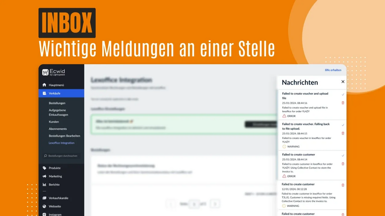 Automatisierte Buchungen: Sobald eine Bestellung in Ecwid abgeschlossen ist, wird diese automatisch als Buchung in Lexware Office erfasst, was Zeit spart und die Genauigkeit Ihrer Finanzdaten erhöht.