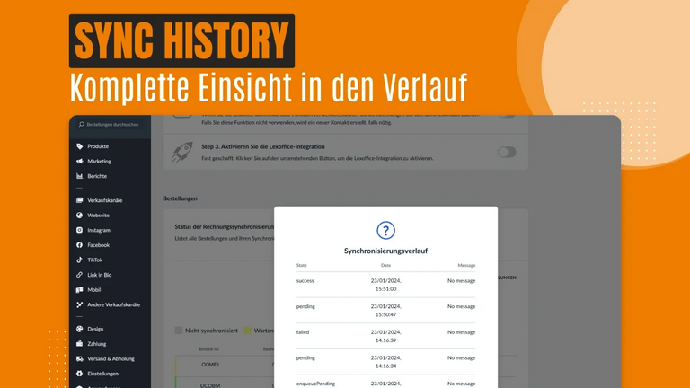 Übertragung von Bestelldaten: Jede Bestellung im Ecwid-Shop wird nahtlos und in Echtzeit in Lexware Office übertragen, um eine lückenlose und zeitnahe Erfassung aller Verkaufsvorgänge zu gewährleisten.