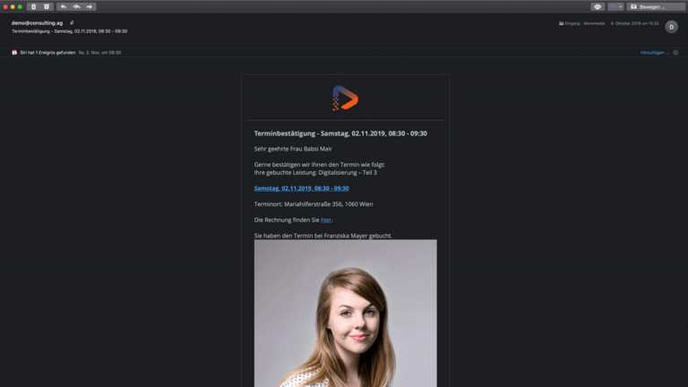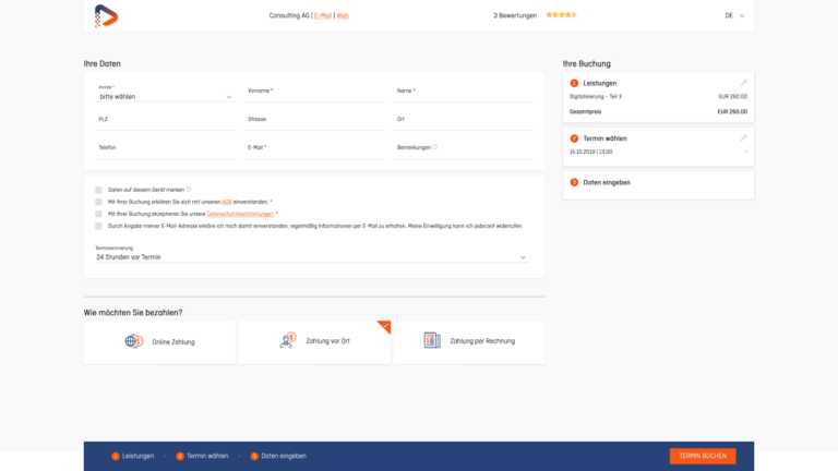 - Übertragung der Termindaten samt gebuchter Leistungen, Preise, Rabatte zur automatisierten Erstellung der Rechnungen und Buchhaltung