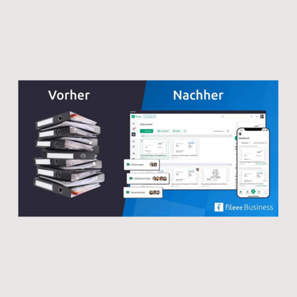 fileee ist der digitale Dokumenten-Assistent für Dein Business. Mit der intuitiven fileee-App und Webanwendung können alle Dokumente, ob privat oder geschäftlich, ganz einfach und digital an einem Ort verwaltet werden. fileee ist Deine mobile Cloud-Lösung aus Deutschland und somit nicht nur ein GoBD-konformer, sicherer und zentraler Verwaltungsort, sondern auch ein Tool zur Unterstützung bei der täglichen Arbeit mit Deinen Dokumenten. Selbstständige, KMU oder Enterprise: Mit fileee Business lassen sich Unternehmensprozesse einfach und effizient abbilden und Teams können gemeinsam in fileee mit Dokumenten arbeiten.