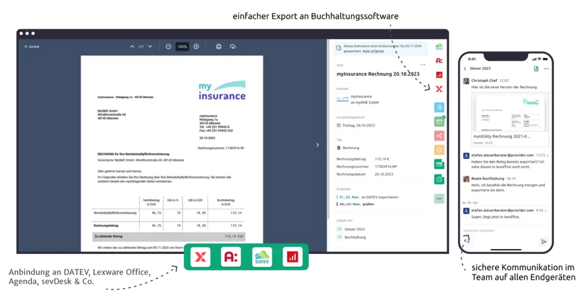 fileee, smartes DMS: Alles einfach und sicher verwalten. GoBD-konform, effiziente Unternehmensprozesse, OCR-Analyse, Export an Lexware Office. Tschüss Papierchaos!