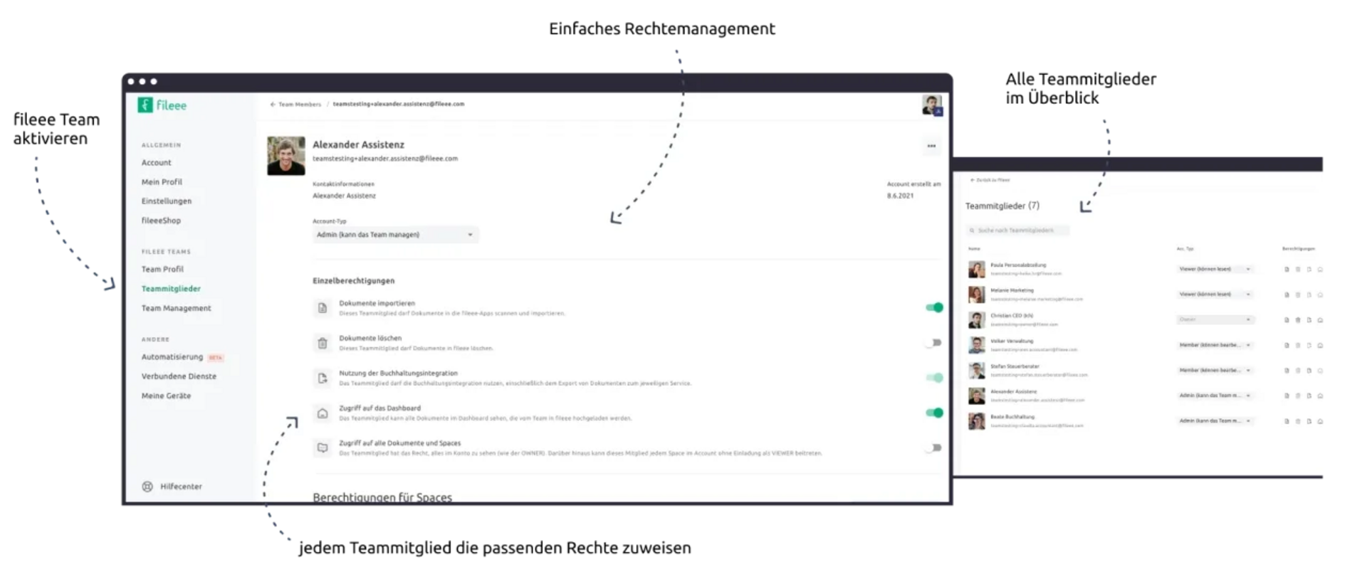 Mit fileee Teams kannst Du innerhalb Deines Unternehmens komplett papierlos zusammenarbeiten. Vergebe individuelle Rechte zum Lesen oder Bearbeiten, sodass jeder Zugriff auf genau die Dokumente hat, die benötigt werden.