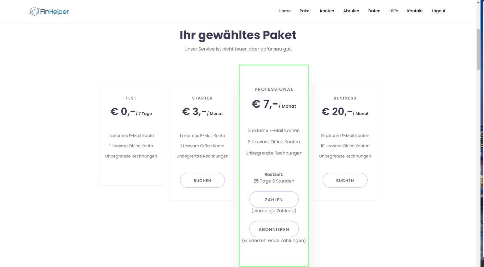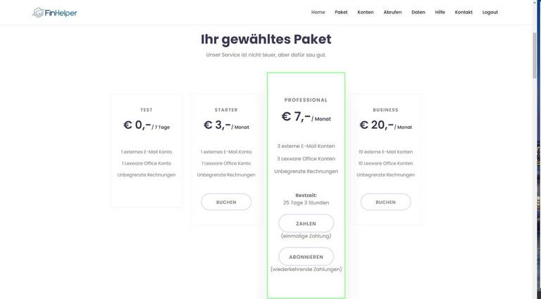 Um den FinHelper zu nutzen, ist eine Registierung bei uns notwendig. Da wir von unserem Service überzeugt sind, schenken wir Dir 7 Tage kostenlosen Zugang ohne Abo Verpflichtung.