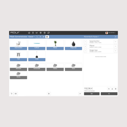 Einfach Cloud Kasse flour anbinden und sofort modern kassieren — in einer oder einer Vielzahl an Filialen.