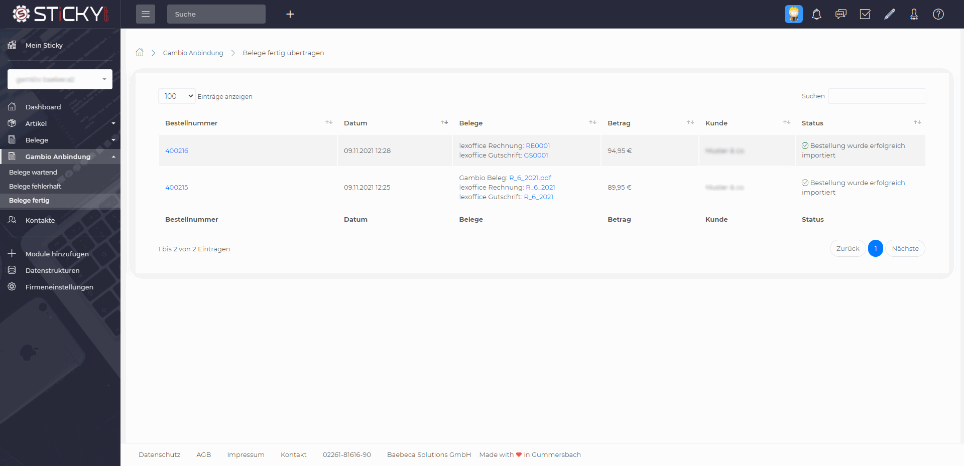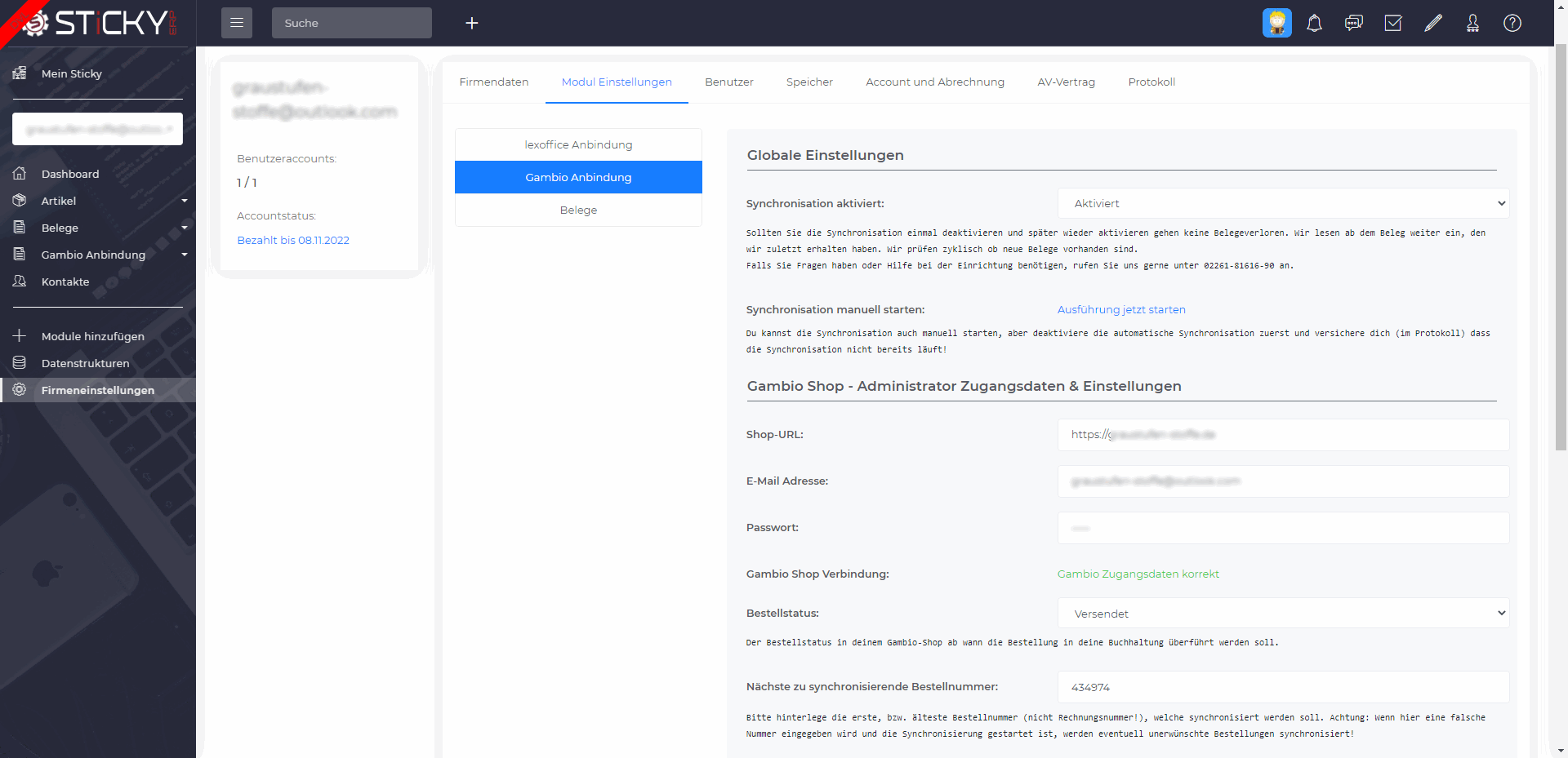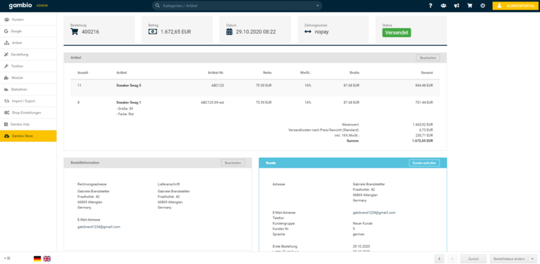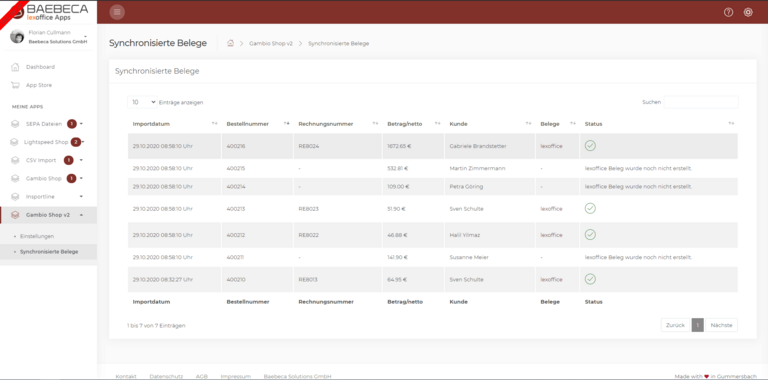 Automatisierte Übertragung von Rechnungen, Gutschriften und Kundendaten aus deinem Gambio Shop nach Lexware Office.