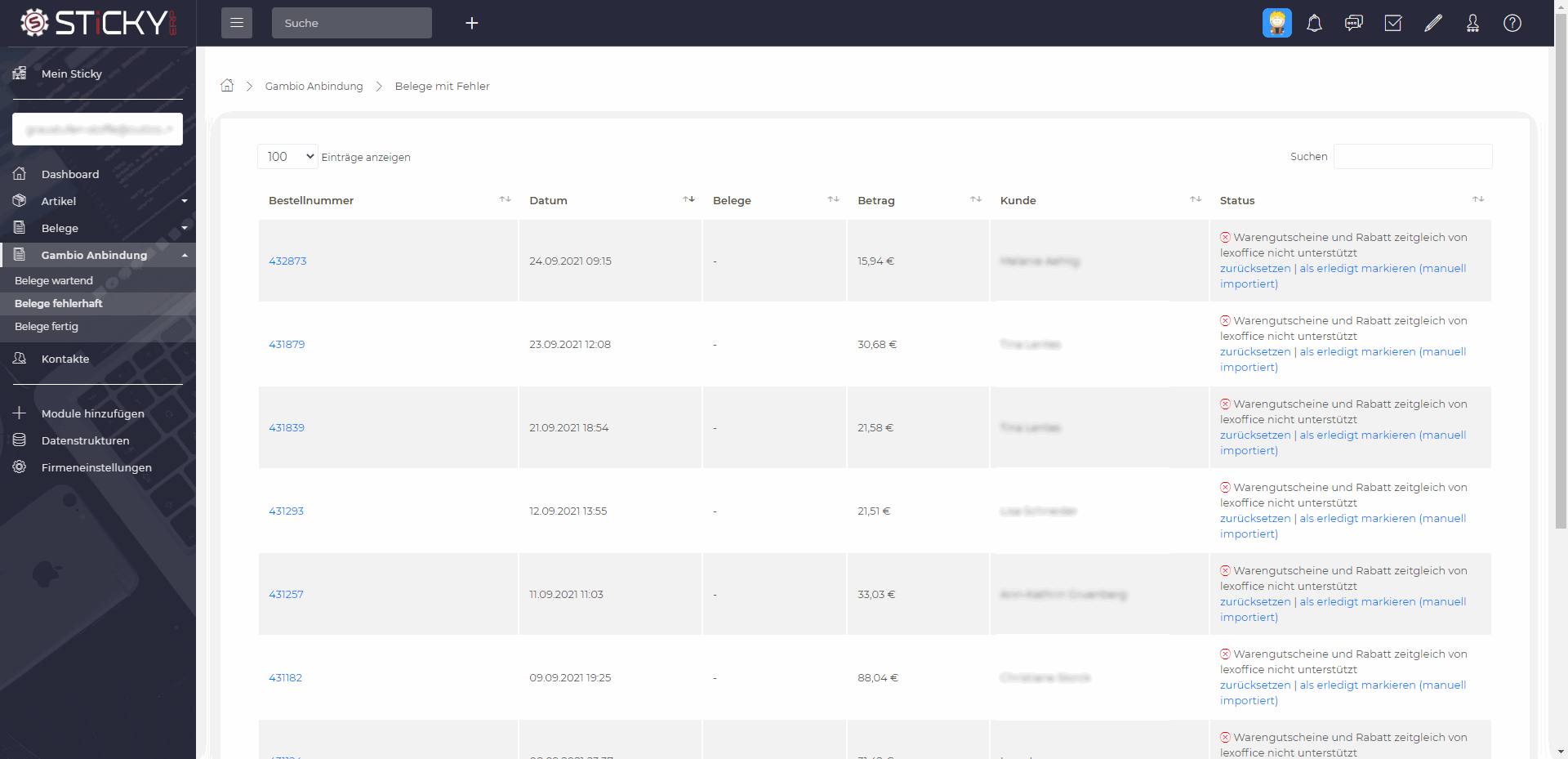 - Gutschriften werden automatisch erzeugt