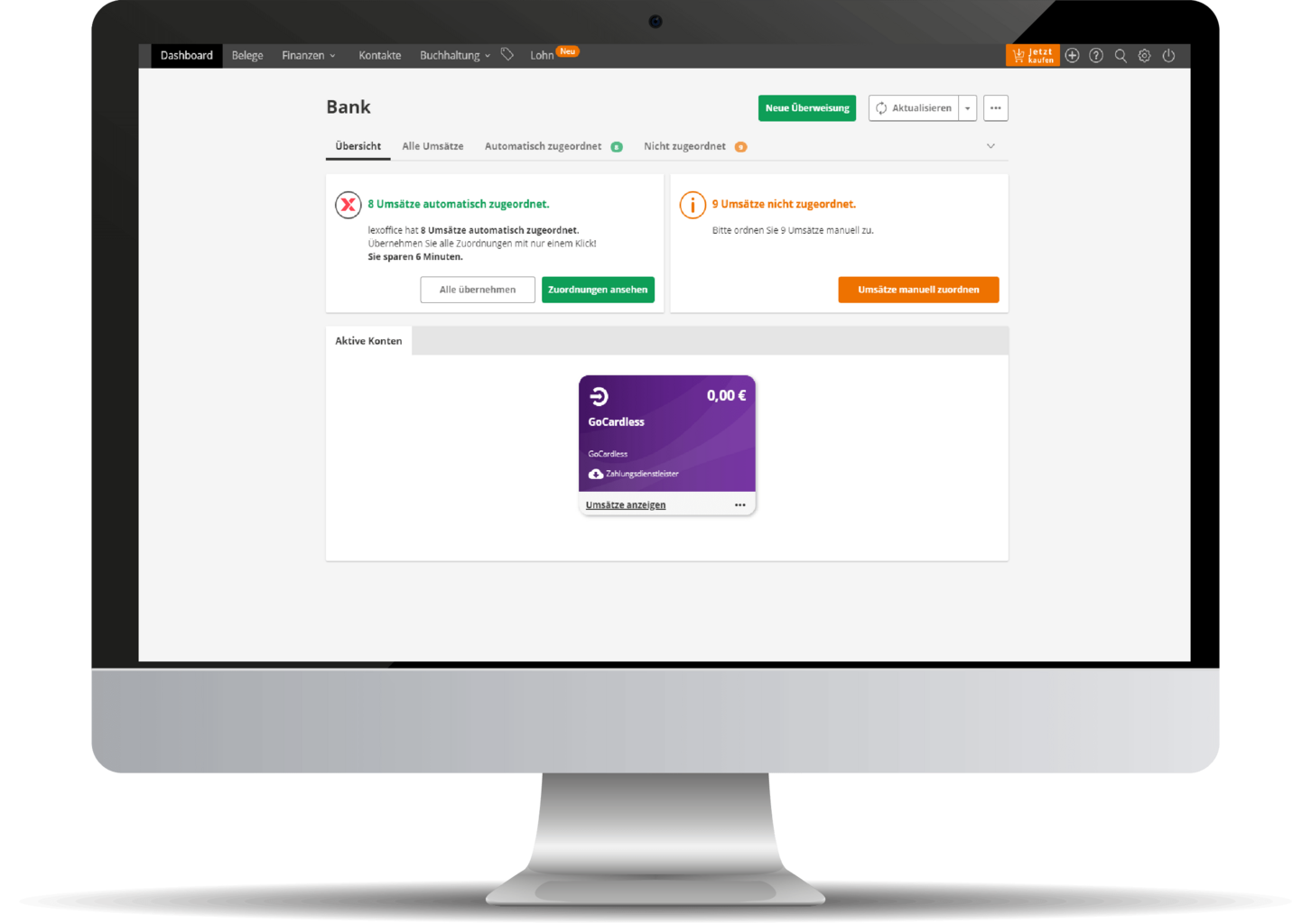 - Unkomplizierte Anbindung Ihres GoCardless-Kontos