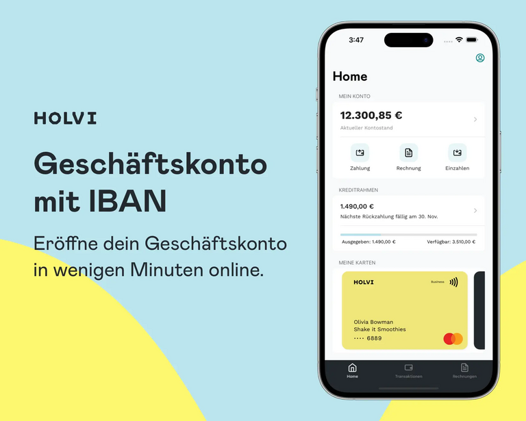 Holvi ist das smarte Geschäftskonto mit deutscher IBAN. Einfach in Sekunden eine virtuelle Karte erstellen und geschäftliche Ausgaben bequem mit Apple Pay oder Google Pay bezahlen. Auch eine klassische Holvi Debitkarte ist in allen Kontomodellen enthalten. Im Holvi Geschäftskonto fällt es leicht, den Überblick über alle Transaktionen zu behalten. Mit der optionalen Verkaufsseite können digitale Produkte und Dienstleistungen einfach verkauft werden – ganz ohne technische Vorkenntnisse.