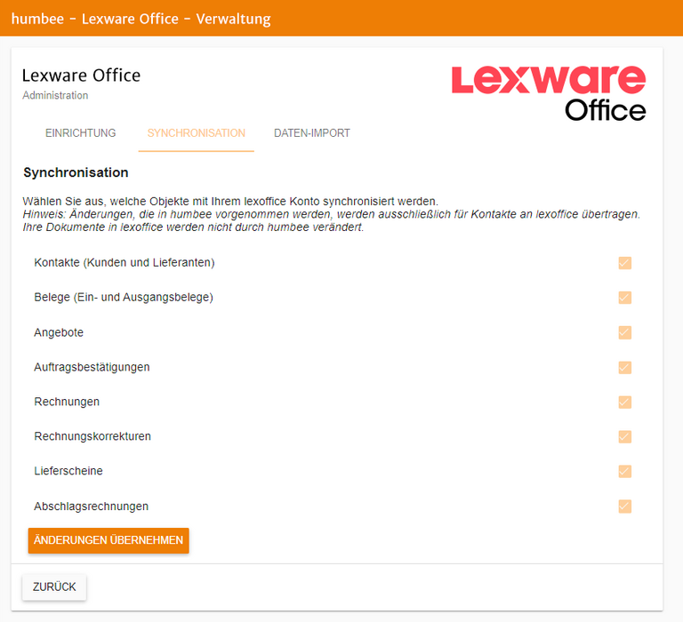 Die Integration verknüpft smartes Arbeiten im digitalen Arbeitsplatz humbee mit Lexware Office, sodass die Daten bi-direktional in Echtzeit ausgetauscht werden. Kunden/Lieferanten, die in Lexware Office angelegt werden, erscheinen automatisch auch in humbee sowie umgekehrt. Die in Lexware Office erstellten Dokumente wie Angebote, Auftragsbestätigungen, (Eingangs-)Rechnungen etc. werden ebenfalls automatisch an humbee übergeben. humbee generiert automatisiert für jeden Kunden / Lieferanten und jedes Jahr einen Vorgang, in dem die Dokumente in Monatsordnern abgelegt werden.