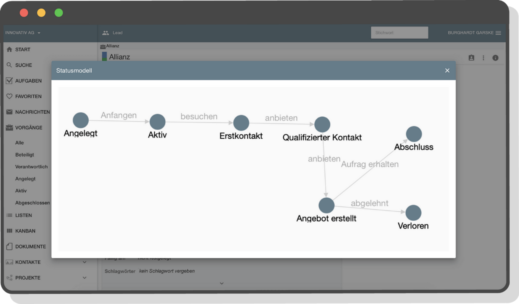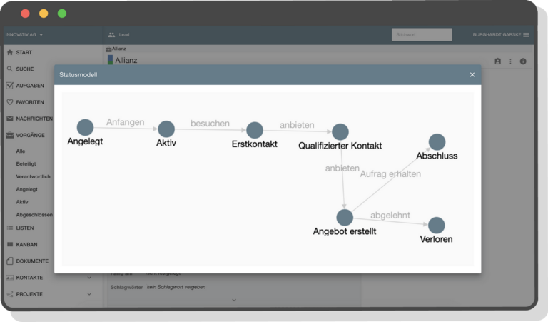 - nutze das integrierte Dokumenten- und Aufgabenmanagement