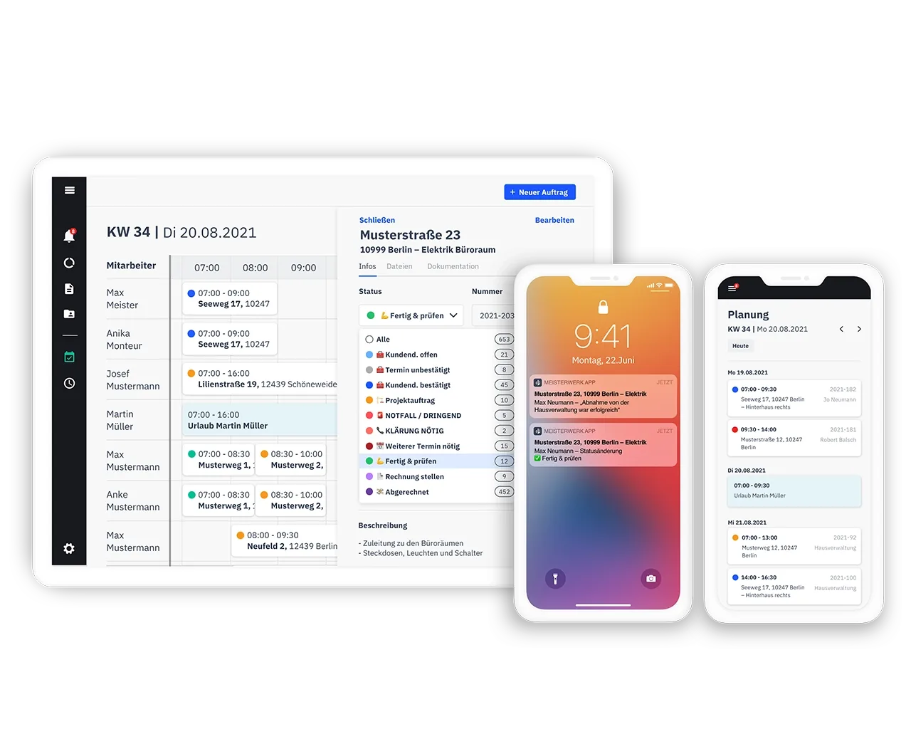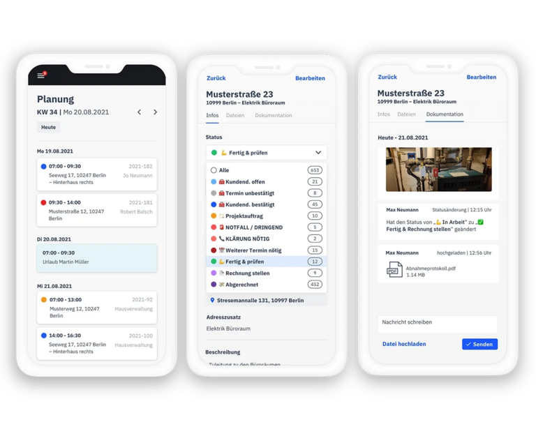 - Du reduzierst die Zeit für die Auftragsplanung, verhinderst Leerzeiten und reagierst schnell auf kurzfristige Änderungen.