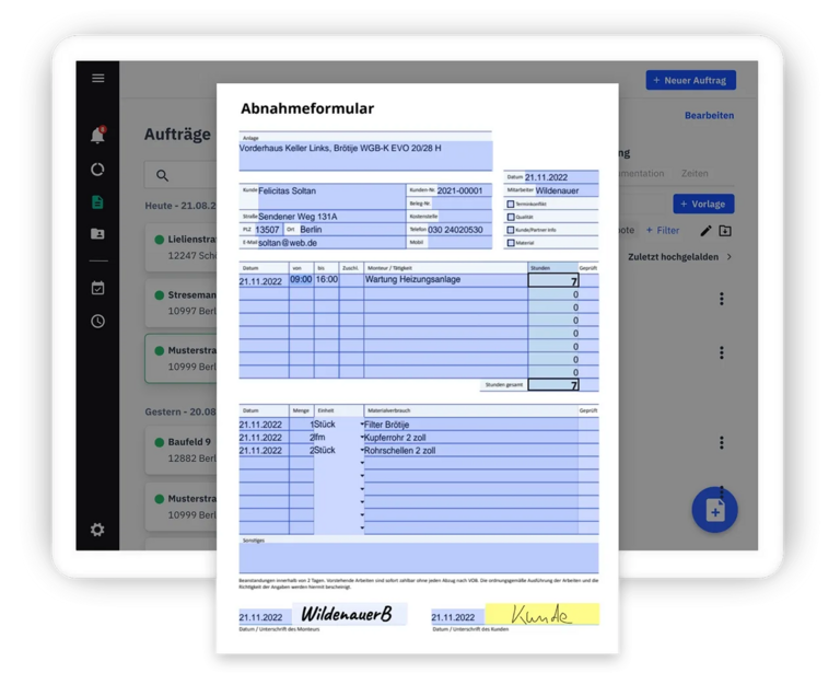 - Deine Formulare lassen sich direkt am Tablet oder Smartphone beim Kundentermin ausfüllen und unterschreiben.