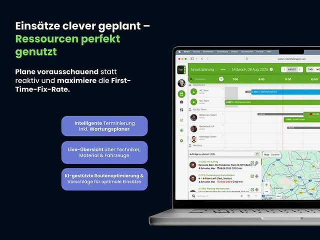 - Digitale Einsatz- und Ressourcenplanung mit KI-gestützter Optimierung sorgt dafür, dass Mitarbeiter, Fahrzeuge und Material perfekt koordiniert sind.