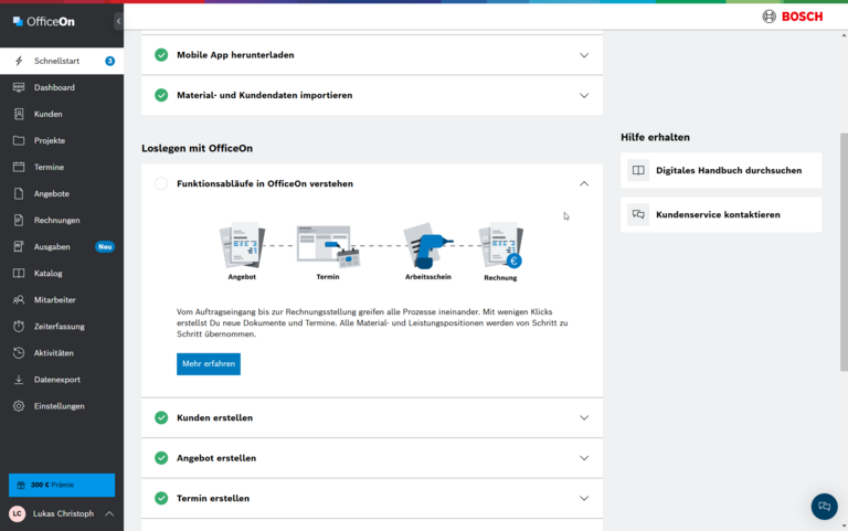 Bosch OfficeOn ist die einfache Handwerkersoftware mit mobiler App. Erledige Angebote, Rechnungen, Terminkoordination, Zeiterfassung und Dokumentation einfacher denn je!