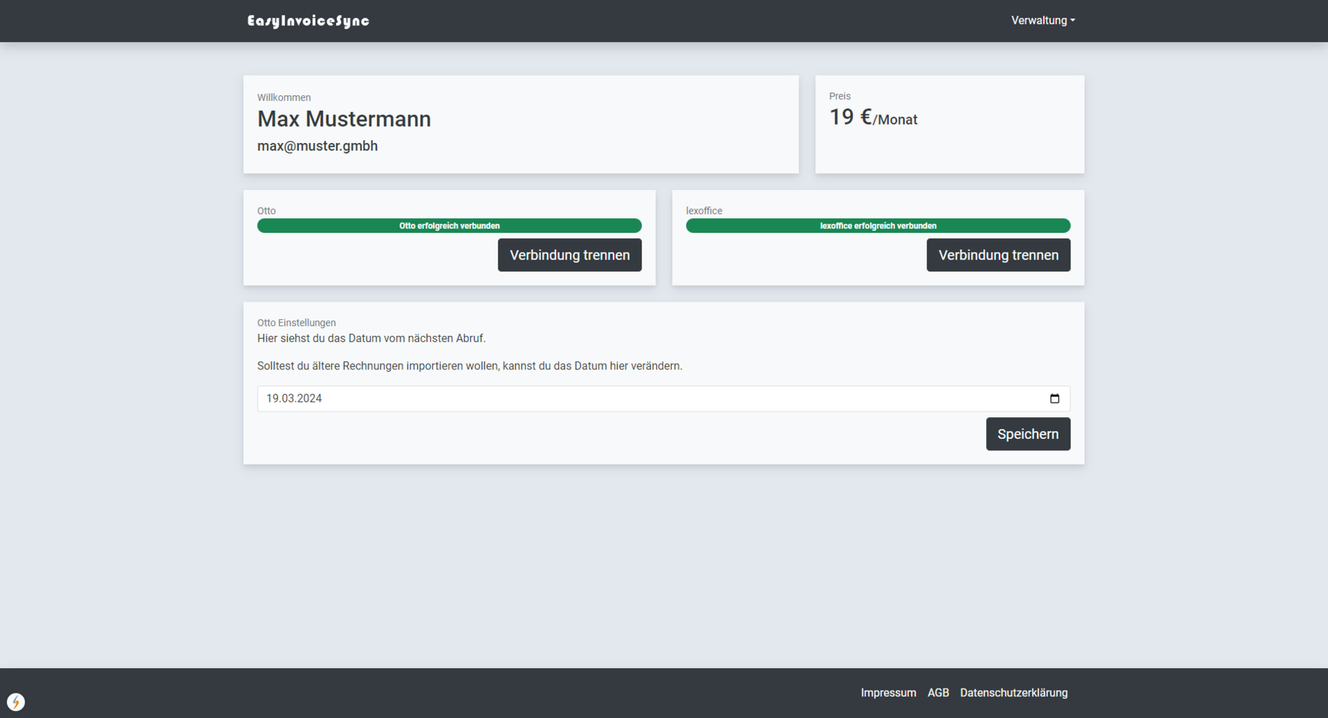 Bitte beachte, dass die Nutzung der Erweiterung gemäß den Nutzungsbedingungen, den AGB und der Datenschutzerklärung von EasyInvoiceSync erfolgt.