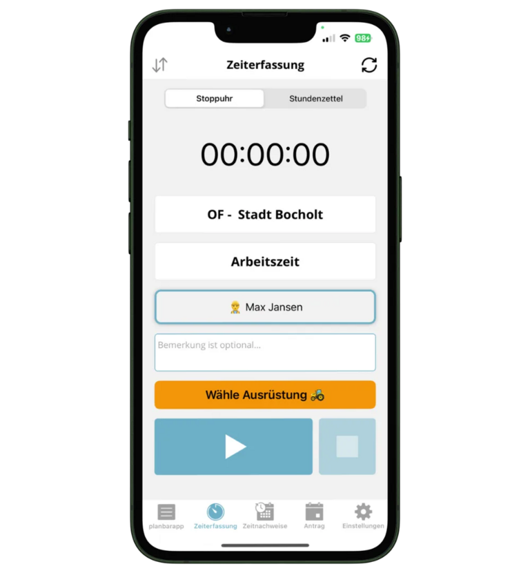 - Digitaler Stundenzettel oder Stoppuhr bequem per Smartphone (IOS & Android)