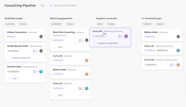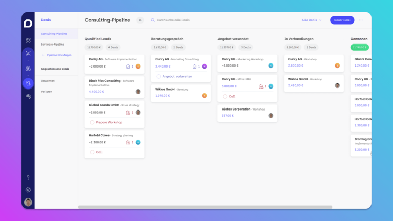 - Kundenanfragen, Leads und Deals qualifizieren und bearbeiten