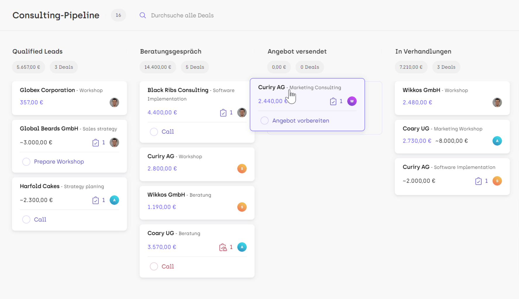 - Mit Samdock qualifizierst du potentiellen Kunden, sammelst alle nötigen Informationen und lässt den Deal so durch deine Vertriebsstufen laufen.