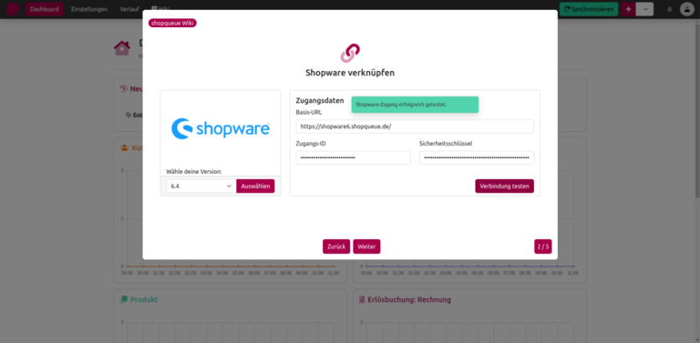Registrieren, Anmelden und mit unserem Einrichtungsassistenten shopware und Lexware Office anbinden, anschließend Funktionen wählen, fertig.