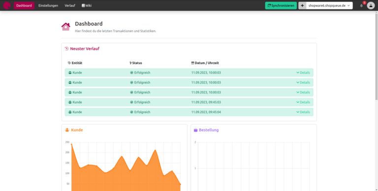 shopqueue sorgt als Webservice dafür, dass alle Umsätze aus shopware 6 automatisch in Lexware Office gebucht werden.