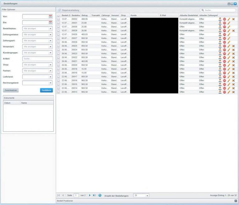 Aus dem Bestelllisting in Shopware ist es zudem möglich, die Bestelldaten manuell nach Lexware Office zu übertragen, damit die Belege in Lexware Office angelegt werden. Ab Shopware 6.5 können die in Lexware Office erstellten Belege jetzt auch zurück in den Shop zur Bestellung übermittelt werden.