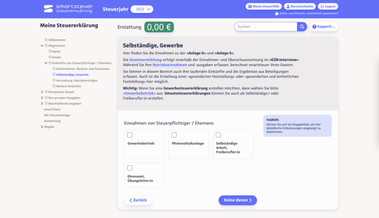 Hilfe bei der Steuererklärung? Mit der Online-Steuererklärung gelangst du mit wenig Aufwand zur Steuererstattung! Perfekt für Arbeitnehmer, Selbständige und Gewerbetreibende.