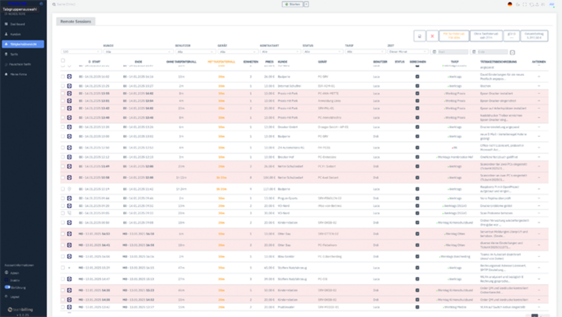 2. Remote Sessions automatisch oder manuell erfassen, verwalten & abrechnen
