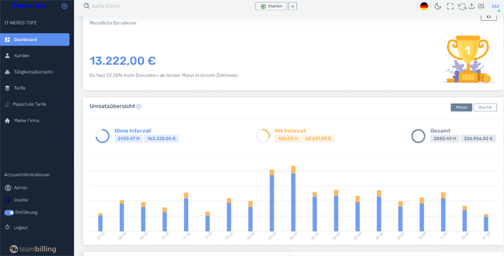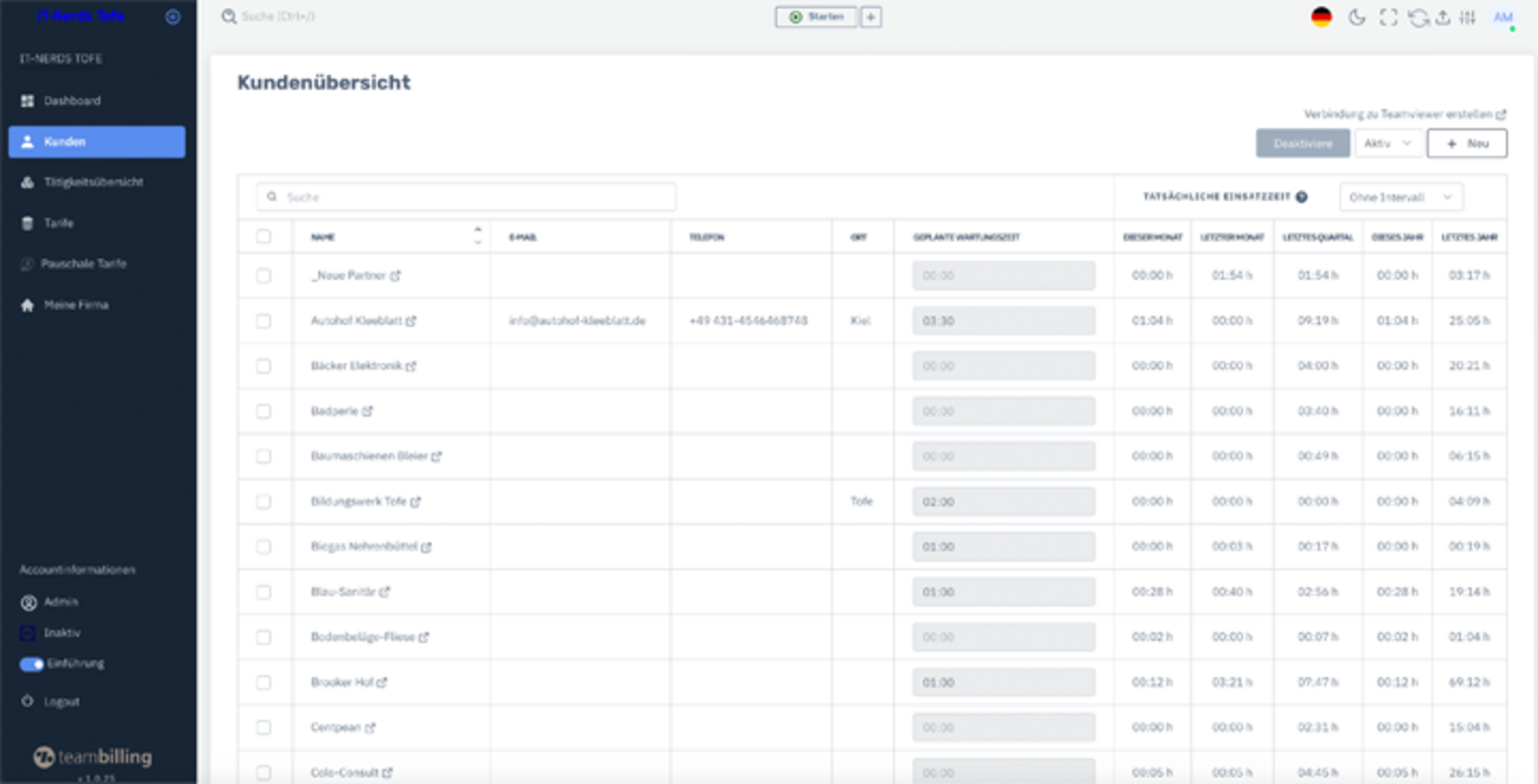 Teambilling ist die smarte Middleware für IT-Dienstleister. Unsere Software verwaltet und automatisiert deine Remote Sessions oder andere Arbeitszeiten. Sie ermöglicht die nahtlose Abrechnung direkt mit Lexware Office und holt zuvor alle Teamviewer-Verbindungen ab. Dank automatisierter Protokollierung und Flexibilität deiner Tarifmodelle, samt Zeitintervallen wird die Abrechnung zum Kinderspiel. Profitiere von einer DSGVO-konformen Lösung und steigere deine Effizienz!