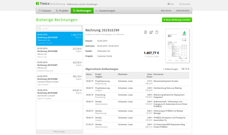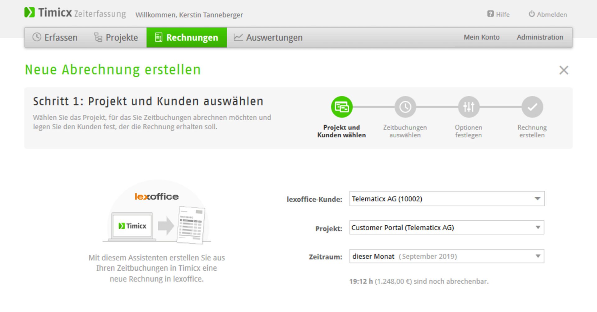 Stunden erfassen mit Timicx, Rechnungen stellen mit Lexware Office