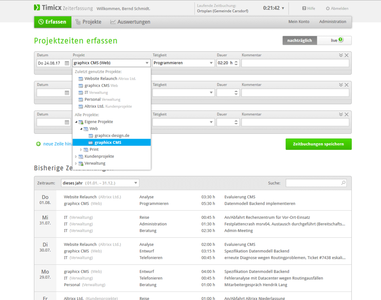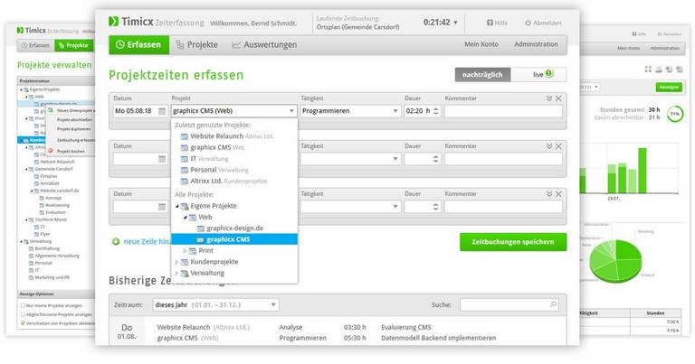 Timicx ist eine Zeiterfassungslösung für kleine und mittelständische Unternehmen, die den Zeitaufwand in ihren Projekten detailliert erfassen und gegenüber ihren Kunden genau abrechnen möchten.
