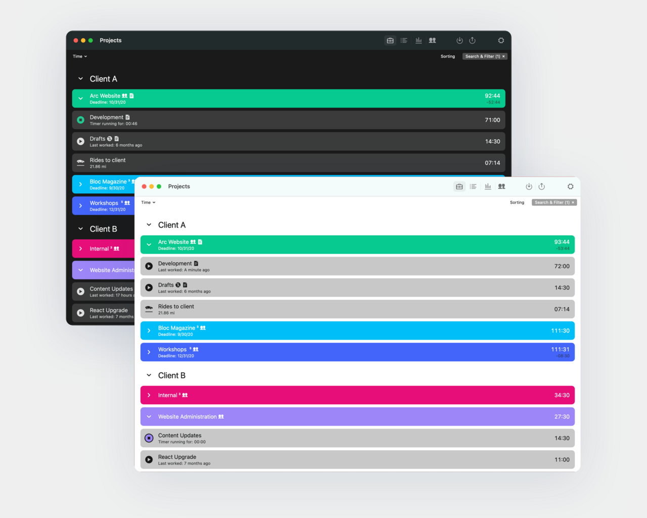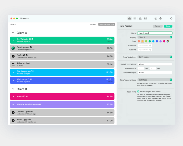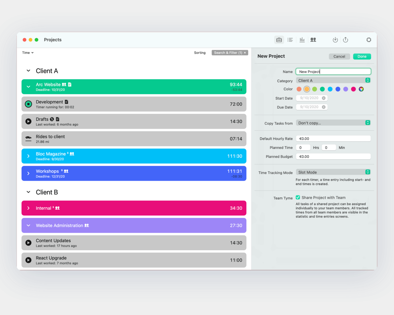- Intuitives Design für einfache und schnelle Zeiterfassung auf Mac, iPhone, iPad und Watch