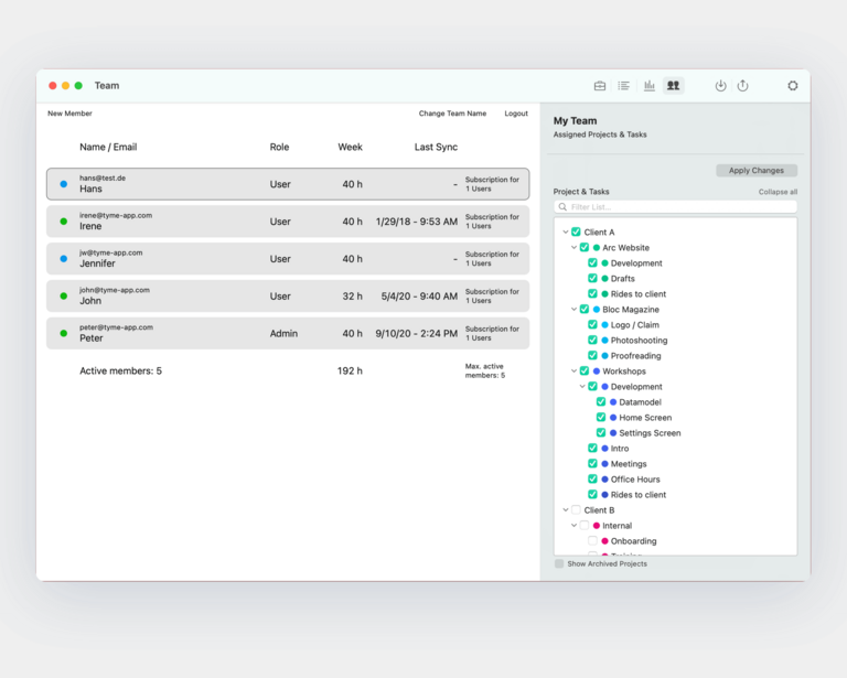 - Zeiten und Statistiken immer synchron auf Mac, iPhone, iPad und Watch via Tyme Cloud oder iCloud