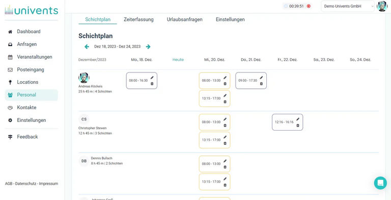 Univents zeichnet sich durch seine umfassende Integration verschiedener Funktionen aus – von Buchungsmanagement über Personalplanung bis hin zu Finanzverwaltung – alles in einer Plattform.